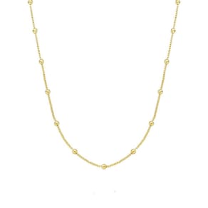 A corrente veneziana com bolinhas traz charme e delicadeza, possibilitando o uso com qualquer pingente VL. Uma peça atemporal com revestimento em Ouro. Perfeita para qualquer ocasião.