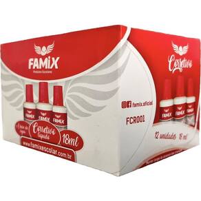 Display de corretivo líquido, frasco com 18ml. Produto aquoso, cargas inertes, essência, dispersantes e dióxido de titânio. Branco, homogêneo, aplicável a pincel, com tampa rosqueável, diluível em água. Display com 12 unidades.