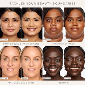 - Deixa a pele com aparência hidratada, não seca ou plana; a fórmula cremosa e acolchoada não endurece ou assenta A tecnologia de fita acolchoada ajuda a suavizar e reduzir a aparência de linhas finas, rugas e poros