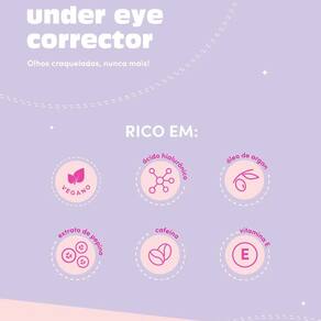 O Corretivo Líquido Ruby Kisses Under Eye Cor 10 oferece uma alta cobertura que não craquela e nem marca as linhas de expressão, camuflando olheiras e imperfeições do jeitinho que a gente gosta, com naturalidade e eficácia. É resistente à transferência, suor e umidade, mas, ao mesmo tempo, sai com facilidade quando a área é higienizada com água e sabonete facial. E não para aí, o corretivo é rico em Ácido Hialurônico, Extrato de pepino, Óleo de Argan, Cafeína e Vitamina E, ativos que juntos cuidam da pele, hidratam, estimulam a região e melhoram a aparência das olheiras. Maquiagem que cuida da pele, tudo para mim