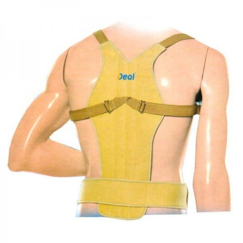 Possui almofadas atoalhadas para as axilas. Indicado para correção postural dos ombros, parte superior do tronco e tratamento de cifose torácica postural e juvenil.