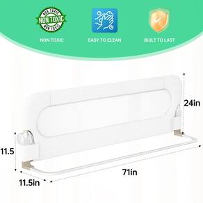 Tamanho do trilho da cama: 188 cm de comprimento x 60 cm superior - Tamanho do trilho da cama: 188 cm de comprimento x 60 cm superior - Segurança em primeiro lugar: nossos trilhos de cama apresentam um design de base em forma de U que aumenta a superfície de contato da cama e está equipado com âncora reforçada, garantindo 100% de segurança para o seu pequeno. Não escorrega ou desliza como outros trilhos de berço. - Proteção contra colisão: fizemos esponjas embutidas onde quer que o trilho de proteção possa tocar para evitar que seu filho se machuque por colisão - Trava de segurança: design dobrável, conveniente para as crianças subirem e saírem da cama ao mesmo tempo, e os lados esquerdo e direito dos trilhos da cama são projetados com um sistema de trava de segurança dupla para evitar o risco de as crianças tocarem por engano - Instalação simples: nosso trilho de proteção de cama pode ser instalado em menos de 10 minutos e pode ser montado sem ferramentas - Capa de tecido de alta qualidade: feita de tecido oxford 300D, que pode ser desmontado e limpo