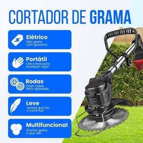 Cortador Aparador De Grama Roda Elétrico Com 2 Baterias 48V