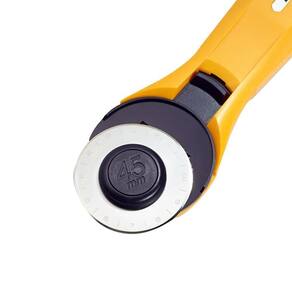 Cortador Circular Prym Maxi Easy 45mm O Cortador Circular Prym Maxi Easy 45mm, oferece uma simplicidade na troca de lâminas Basta empurrar o slide na parte de trás da alça para baixo para liberar a lâmina. A lâmina afiada corta várias camadas de tecido de forma limpa com precisão milimétrica. Este prático cortador rotativo é uma necessidade definitiva para patchwork, quilting e outras tarefas de costura: Perfeito tanto para materiais duros e grossos quanto para materiais macios e finos, como toalhas, lã, couro ou jeans. - Marca: Prym - Modelo: Cortador Circular - Referência: 611 379 - Contém 01 unidade - Cor: Amarelo e preto - Lâmina de 45mm - Tamanho do cortador: 17,5cm - Pode ser Utilizado para frente e para trás - Adequado para destros e canhotos Ean: 4002276113794