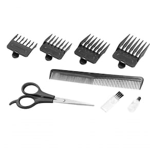 Kit Completo com 8 Acessórios: Vem pronto para o uso com 4 pentes de corte (3mm, 6mm, 9mm e 12mm), pente de barbeiro, tesoura, escova de limpeza e óleo de manutenção.