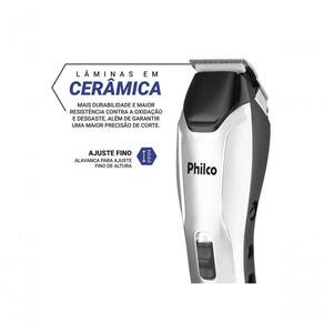 Descricao O Cortador de Cabelos Philco PCR04 e perfeito para quem busca praticidade e eficiencia no cuidado com os cabelos.Com uma potencia de 18W, proporciona cortes precisos e rapidos, garantindo resultados profissionais no conforto do lar. Seu cordao de 1,80 metros oferece liberdade de movimento durante o uso, facilitando o manuseio em diferentes posicoes.Alem disso, o Cortador de Cabelos Philco conta com um anel para pendurar, o que facilita o armazenamento do aparelho, mantendo-o sempre ao alcance das maos quando necessario.Com 9 acessorios inclusos, este Cortador oferece autonomia para realizar uma variedade de cortes, permitindo experimentar diferentes estilos sem a necessidade de ir a um salao.Suas laminas em ceramica sao altamente duraveis, eficientes e faceis de limpar, garantindo uma experiencia de uso sem complicacoes.Seja para um corte simples ou para criar um visual mais elaborado, o Cortador de Cabelos Philco PCR04 e a escolha perfeita para quem valoriza qualidade e praticidade no cuidado com os cabelos.Caracteristicas:- 18W de potencia- 4 pentes de corte com 3, 6, 9 e 12mm- Tesoura, pente, protetor de laminas, oleo para lubrificacao e escova para limpeza- Laminas em ceramica- Alca para pendurar- Botao liga/desliga- Alavanca para ajuste das laminas- Cordao de 1,80M.*Imagens meramente ilustrativas.Especificacao Tecnica Dimensoes do produtoAltura do produto 5 cmLargura do produto21 cmComprimento do produto6,8 cmPeso do produto 0,55 kgPotencia (W)18WGarantia (Dias)360ModeloPCR04Consumo (kW/h)0,018Caracteristica da laminaCeramicaAcessorios- Tesoura- Pente- Protetor de Laminas- Oleo Lubrificante- Pentes de CorteCorCromado com pretoEstadoNovo