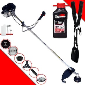 Roçadeira À Gasolina Toyama RT43L-B-25A 43cc 1,7HP 2T Com Lâmina 3 Pontas + Faca 2 Pontas 330mm + Faca 40 Dentes 255mm + Faca 80 Dentes 255mm + Escova Rotativa 38 Cerdas + Óleo Toyama FG50 500ml