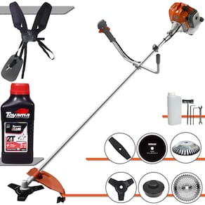 Com guidão ergonômico lateral, permite um alcance amplo e maior mobilidade, capaz de aumentar a produtividade diária. Possui motor 2 tempos á gasolina, de 42,7 Cilindradas (43cc) 9.000 de rotação 1,7HP de potência que proporcionam maior performance e economia na operação.Seu conjunto de acessórios inclui kit de ferramentas, cinto de suporte duplo almofadado, carretel de nylon e lâmina de corte 3 pontas.