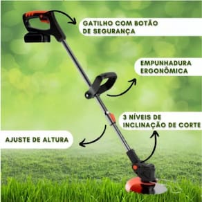 Roçadeira potente bateria 21v recarregável cortador aparador grama 2 baterias Adquira agora e experimente a potência e a praticidade que você precisa para manter seu jardim sempre impecável. A duração da bateria varia de acordo com o uso, mas com a roçadeira a baterias 21v, você terá tempo suficiente para concluir suas tarefas. Seja cortando cantos ou eliminando ervas daninhas, essa máquina robusta e de excelente manobrabilidade garantirá resultados profissionais. Informações técnicas : Recarregável bateria 21v Lâminas de plástico - corte de gramas macias Lâminas de metal - ervas daninhas e gramas altas Disco de metal corte 360 graus - arbustos e plantas maiores Itens inclusos : 1x lâmina disco 40 dentes 2x lâminas de metal 5x lâminas de plástico 2x baterias 21v 1x carregador : 30 dias Marca: Não Informado