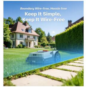 Sistema de visão AI com câmeras detecta obstáculos em tempo real, ajustando trajetórias e parando instantaneamente se levantado ou inclinado. Corte paralelo com ajuste automático de ângulo de 15° gera listras uniformes, com disco flutuante e 3 lâminas para precisão em 1 cm. Configuração em 5 passos inclui tutorial no app para zonas, cronogramas, edição de mapas virtuais e áreas de exclusão.