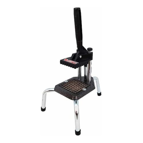 Cortador De Legumes Pequeno - Vitalex Descrição Corpo em alumínio fundido Cabo e basculante em plástico Colunas e pés em tubo de aço 5/8 Facas em aço inox de 10 mm Pintura eletrostática Para uso doméstico Cor: Preto Altura 40 cm Largura 19,5 cm Profundidade 27,5 cm Peso 965 g Ean: 7898688650005