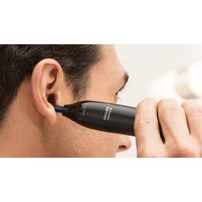 O Norelco Nose Trimmer 1000 oferece conforto final sem puxar garantido. Apara o nariz, a orelha e a testa indesejados com facilidade. Inclui um aparador linear, bateria AA e protetor de sobrancelha. Totalmente lavável e fácil de limpar.