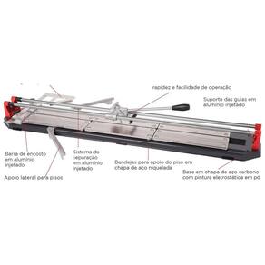 Cortador super 1150 Os cortadores profissionais super são indicados para cortar pisos cerâmicos, porcelanatos e pastilhas de vidro com até 12 mm de espessura. Possuem corte e separação na própria base, sem a necessidade de retirar a peça para fazer a separação e sistema de articulação que permite separar peças em qualquer ângulo; Guias em aço niquelado proporcionando maior durabilidade; Rodel cortante com disco de carboneto de tungstênio e acompanha rodel titânio para cortes rústicos com relevo; Utilizando o tapete de borracha acompanha o produto , é possível efetuar cortes em pastilhas de vidro e cerâmica de uma forma simples, rápida e segura; Marca: Não Informado