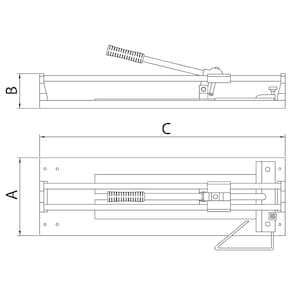 Cortador de piso Tramontina com base de corte em chapa de aço especial, apoio das guias em alumínio injetado e guias tubulares em aço especial. O carro e separador em alumínio injetado com cabo em aço especial com empunhadura emborrachada. Conta ainda com régua graduada injetada e disco de corte em carboneto de tungstênio