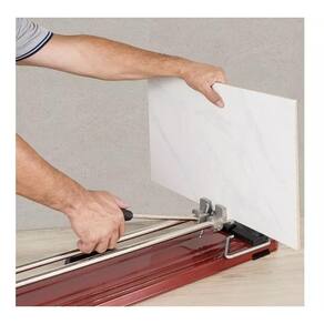 Os cortadores profissionais da linha TEC são indicados para cortar pisos cerâmicos e porcelanatos até 10 mm de espessura. Sistema de separação na parte superior do carro guia; Carro-guia em alumínio injetado; Guias em aço carbono niquelado proporcionando maior durabilidade; Rodel cortante com haste em aço carbono zincado e disco de carboneto de tungstênio wídia . Características: Sistema de separação em aço e tratado termicamente para maior vida útil; Barra de encosto em plástico injetado; Limitador lateral para cortes retos e diagonais precisos; Base em chapa de aço carbono com pintura eletrostática a pó; Suporte das guias em alumínio injetado; Alça para transporte; Pé antiderrapante. Dados Técnicos Comprimento máximo de corte 900 MM Tamanho máximo de piso para corte diagonal 640mmx640mm Espessura máxima de corte 10 MM Rodéis para Substituição 80MM Duplo Garantia Garantia de 06 meses, oferecida pelo fabricante. Marca: Não Informado Ean: 7897451411508