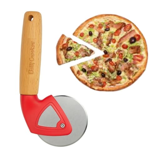 Seu mecanismo giratório desliza suavemente sobre a massa, garantindo fatias uniformes em pizzas, quiches, tortas e até legumes em rodelas.