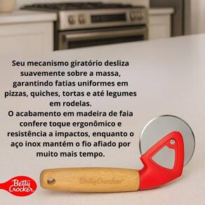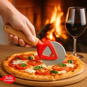 Torne o preparo e o serviço das suas receitas ainda mais prático, peça já o seu Cortador Giratório para Pizza Betty Crocker!