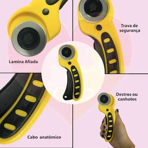 Precisão no corte de tecidos, papeis, sinteticos entre outros, com nosso Cortador Manual Circular com Disco de 45mm! Nosso cortador combina eficiência e facilidade de uso, tornando-o indispensável para todos os entusiastas de costura e artesanato. Com uma lâmina afiada e durável, você alcançará cortes perfeitos e limpos. Sua ergonomia proporciona total conforto durante o uso, reduzindo a fadiga e aumentando sua produtividade, conta tambem com trava de segurança para acionar o disco. Marca: ADB