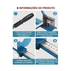 Para facilitar o processo de corte, o Cortador DC-35 vem acompanhado de uma régua de 50 centímetros com um limitador. Esse limitador assegura que todas as peças tenham o mesmo tamanho, contribuindo para a igualdade e consistência no trabalho realizado.
