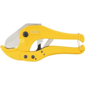 Cortador de tubos 15/8" para tubos de PVC VONDER Possui corpo e cabo metálico proporcionando maior resistência e durabilidade e acabamento com pintura amarela, proporcionando maior resistência contra oxidação/corrosão. Possui lâmina de aço, que proporciona cortes limpos, rápidos e sem rebarbas. Conteúdo: 1 Cortador de tubos. Capacidade: 1.5/8" | Material (tipo/composição): Metal | Massa aproximada (peso) (kg): 29 g kg