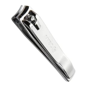 Lâminas curvas e lixa a laser, cabo antiderrapante. Cortador de unhas que atende aos requisitos de segurança das linhas aéreas e que por isto, pode ser levado em sua bagagem de mão. Este cortador é mais pesado, mais forte e especialmente desenhado com lâminas retas que cortam com facilidade as unhas mais duras e evitam que elas se encravem nos dedos dos pés.