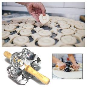 Cortador de Donuts Manual – Prático e Funcional Com o Cortador Rotativo de Donuts, você pode preparar donuts, biscoitos e cookies de forma rápida e uniforme. Seu sistema de rolagem facilita o corte, permitindo fazer várias peças do mesmo tamanho, ideal para padarias, buffets, confeitarias ou até para uso em casa. Informações do Produto Tipo: Cortador/Molde rotativo para donuts Material: Alumínio com cabo de madeira Cor: Prata Tamanho do cortador: 29 x 13,5 cm Tamanho de cada donut: Aproximadamente 7 cm Peso: 592 g Embalagem: Caixa individual
