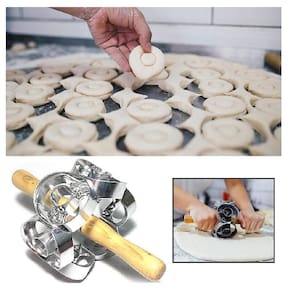 Informações do Produto Tipo: Cortador/Molde rotativo para donuts Material: Alumínio com cabo de madeira Cor: Prata Tamanho do cortador: 29 x 13,5 cm Tamanho de cada donut: Aproximadamente 7 cm Peso: 592 g