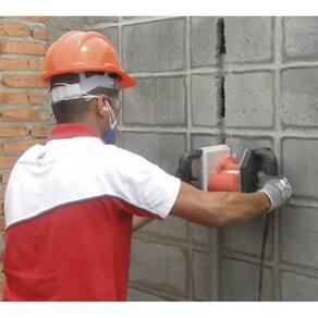 o cortador de parede foi projetado para executar cortes retos e curvos em paredes de tijolos maciços ou com furos, blocos de cimento, paredes rebocadas ou com gesso.