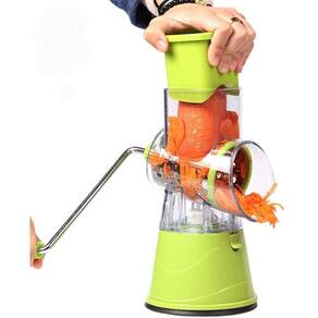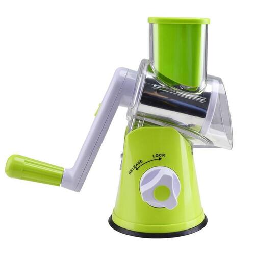 cortador Manual de Batata Cenoura Legumes Ralador de Queijo aço Inoxidável Lâminas de Cozinha ferramenta equipada com 3 lâminas de aço inoxidável de alta qualidade, resistente e lâmina afiada. simples mecanismo de manivela gira tambor e cria perfeitamente ralado ingredientes. Para operar e fácil de limpar. ótimo para batatas fritas, salada de repolho ralar. perfeito para ralar queijo, legumes, batatas, batata doce, nozes, cebolas e muito mais . A base de sucção garante aderência e estabilidade em uma superfície plana.