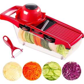A salada perfeita na sua Cozinha! O segredo dos grandes chefes! com este espetacular utensílio para cozinha, você poderá preparar as receitas de sua preferência rapidamente e com menos esforço. O Mandoline, Rala, Pica e Tritura os alimentos mais variados: Cebolas, pepinos, tomates, batatas, frutas em geral, cogumelos, queijos, etc.. Basta inserir os produtos no suporte e colocar sobre as lâminas e deslizar sucessivamente até criar a sua salada, cortar legumes e frutos que precisar. Faça uma salada com uma excelente apresentação em menos de 30 segundos ou corte batatas em menos de 5 segundos. O utensílio possui compartimentos para preservar as lâminas que não estão sendo utilizadas, evitando que se percam ou fiquem dispersas.