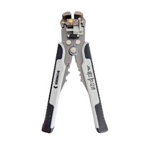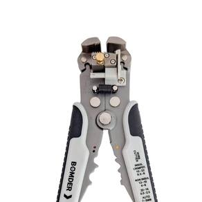 Alicate crimpador automático, cabo ergonômico, partes em plástico técnico para maior durabilidade e resistência, reforçado com revestimento de borracha, com batente ajustador de comprimento (desencapa sempre no comprimento desejado), e pino regulador da intensidade da força, corpo em aço carbono temperado e fosfatado, próprio para uso continuo por fábricas e profissionais de eletricidade e telefonia.