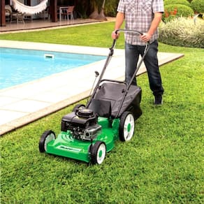 Vantagens: - Equipado com afogador manual e válvula de combustível para facilitar a partida do motor. Possui bujão para facilitar a drenagem do óleo do cárter. - A dimensão das rodas traseiras, facilita a mobilidade dos cortadores em qualquer tipo de terreno. - Rodas de termoplástico com bucha sinterizada. - Tamanho das rodas: dianteiras: 203 mm (8), traseiras: 305 mm (12). - Com restrição de uso em terrenos acidentados (inclinação máxima de 15). - Cabo ergonômico para maior conforto do operador, dobrável, facilitando o transporte e armazenamento. - Base em chapa de aço de 1,9 mm de espessura. - Equipados com motor TRAPP (Lifan), movidos a gasolina comum (não aditivada). - Lâmina: Em aço especial, de 3 mm de espessura com têmpera por indução no fio de corte. - Regulagem de altura de corte: Em 9 posições, com variação de 2,8 a 8,9 cm (sistema de regulagem de altura individual nas 4 rodas). - Acabamento: Todas as peças metálicas recebem tratamento anticorrosivo e pintura com tinta a pó de poliéster polimerizado em estufa a 220 C, garantindo maior durabilidade e acabamento.