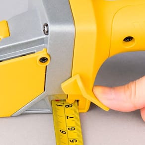 Material da Carcaça Liga de Alumínio e Plástico Resistente Lâmina Aço Carbono 58 x 18.75 x 0.6 mm Trena 5 Metros em Aço Carbono Funções Medir Cortar Guardar Lâminas e Fazer Círculos Design Compacto Portátil e de Fácil Operação Quantidade de Lâminas 1 Instalada e 5 Reservas