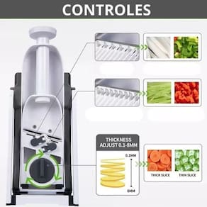 Cortador Multifuncional 5 Funções Fatiador Legumes Mandoline Cortador Multifuncional 5 Funções Fatiador Legumes Mandoline ===================================== Ideal para quem busca agilidade, precisão e versatilidade na hora de cortar batatas, legumes e vegetais, este cortador facilita o preparo de suas receitas, garantindo cortes uniformes e perfeitos com o mínimo de esforço. Permite que você faça cortes em fatias finas, médias e grossas, além de cortes em palitos finos , corte em cubos e até cortes ondulados para dar um toque especial às suas receitas, Ideal para cortar batatas, cenouras, pepinos, tomates, cebolas, abobrinha, entre outros vegetais e legumes. Também pode ser para preparar alimentos para saladas, fritas, chips, pratos cozidos ou até decoração de pratos, com lâminas de aço inoxidável e estrutura resistente Durável e resistente, sendo um ótimo investimento para sua cozinha por muitos anos. ===================================== Contém: 01 Cortador Multifuncional Especificações: - Material: Plástico e Aço Inox - Medida: 28cm x 21cm - Possui um Espaço para Amassar Alho - Peso: 600 gramas - Cor enviada de forma aleatória conforme disponibilidade em ===================================== Devido à diferença entre monitores e iluminação diferentes, pode haver variação na tonalidade apresentada no anúncio. Medidas muito aproximadas. Marca: Não Informado