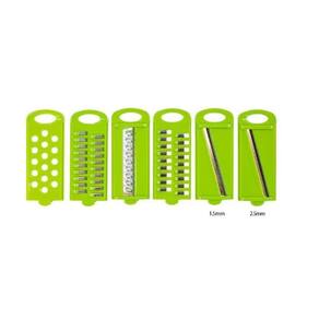 O Cortador Multifuncional Fatiador Frutas Legumes Verduras acompanha lâminas de 1.5mm, 2.5mm, corte julienne grande e pequeno, corte ondulado e ralador. Assim, você terá diversas opções de corte para preparar os alimentos de acordo com a sua preferência.