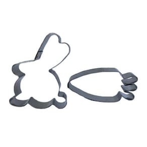 Cortador Coelho e Cenoura - 2 peças em aço inox. Ideal para modelar diversos tipos de massas como: Pasta Americana, Biscoito, Massa Biscuit. Perfeito para decorar Bolos, Cupcakes, Biscoitos, entre outros.