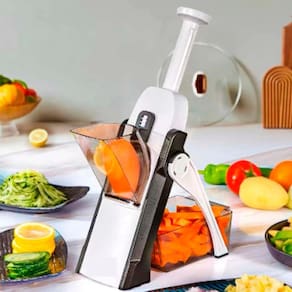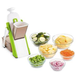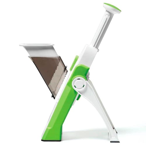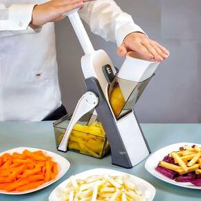 Informações adicionais: - Multifuncional. - Bomba de mola de alto desempenho para maximizar a força de corte. - Mecanismo vertical e lâminas ultra-afiadas para cortar alimentos sem esforço. - Lâminas ajustáveis para definir a fatia sem espessura de 0,5 mm a 8,0 mm. - Também faz diferentes tamanhos de juliana e cortes de dados. - O empurrador e o alimentador são fechados para evitar o contato com as lâminas. - Pés dobráveis, bomba retrátil e equipados com tampa para armazenamento compacto e seguro. - Próprio para máquina de lavar louça.
