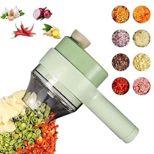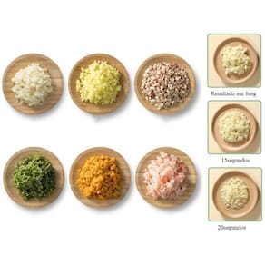 Descrição do produto: Com ele você pode ter um cortador de vegetais, picador de carne e ainda uma escova de limpeza elétrica ao mesmo tempo, apenas trocando os acessórios do conjunto multifuncional. É mais conveniente cortar seus vegetais frescos direto no recipiente, adicionar a mistura ou o condimento que desejar de forma super prática. Utilize para triturar diversos vegetais e condimentos como cebola, alho, pimenta, salsinha, cominho, gengibre e entre outros, O produto acompanha um socador que auxilia na introdução de vegetais pequenos ou pedaços prevenindo acidentes e este ainda conta com descascador de frutas do lado oposto.