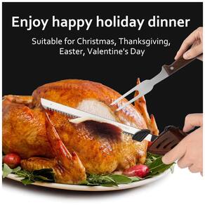 Desfrute da praticidade de cortar alimentos com a versátil faca elétrica MOVNO. Suas lâminas serrilhadas de aço inoxidável 340 de alta qualidade com design de 2 lâminas de aço inoxidável garantem cortes limpos e uniformes. Seja para preparar uma festa de Natal, de Ação de Graças, de Páscoa ou uma refeição rápida durante a semana, esta faca elétrica permite cortar carnes, pães, legumes, peru, filés e muito mais com facilidade. Instale as lâminas em apenas 5 passos simples. A empunhadura ergonômica proporciona conforto ao usuário, oferecendo aderência segura e antideslizante. Com um cordão de 60 polegadas, você terá alcance de sobra para cortar alimentos ou até mesmo materiais para artesanato. A eficiência de corte incomparável reduz o tempo na cozinha em até 50%, tornando mais rápido e fácil preparar suas refeições. Fácil de limpar e manter, esta faca elétrica para pão é durável e pode ser lavada à mão ou na máquina de lavar louça. A embalagem elegante a torna um presente perfeito para qualquer ocasião.