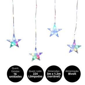 Cortina 16 Estrelas LED Color 224 Lâmpadas 8 Funções 3m