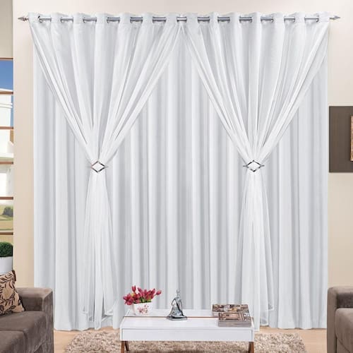 Cortina 2 Mts Sala Quarto Voal Com Microfibra Para Trilho Comum Branca Barata