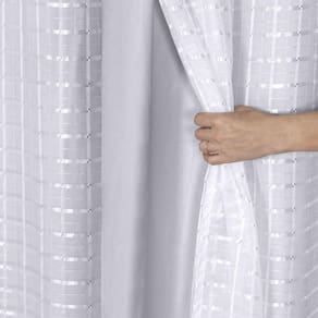 Cortina 3,00x2,50 Sala Quarto Cozinha Voil Blackout Tecido Cor:xadrez Branco