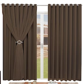 Cortina Blackout 4,00m X 2,30m Sala Quarto Tecido Com Voil + Presilha Moderna -Tabaco
