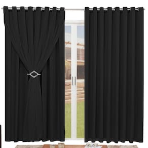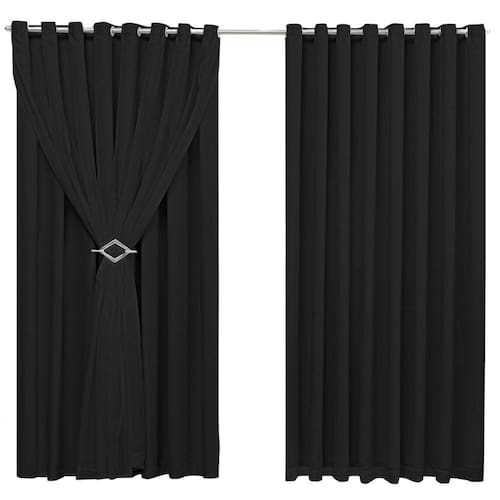 Cortina Blackout 4,00m X 2,70m Sala Quarto Tecido Com Voil + Presilha Moderna -Preta