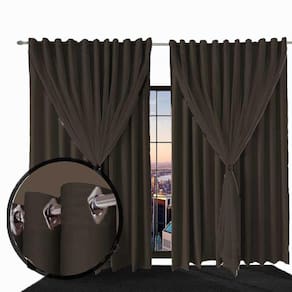 Cortina de blackout em tecido para Corta Luz 8,00 metros x 2,70 Com Voil Voal liso Para Sala Quarto Cortina com voal liso transparente na frente, serve para sala e quarto, a cortina tem um tecido de blecaute grosso atras como forro, suaviza a passagem de luz, e com detalhe do acabamento em Ilhós cromado