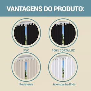 Benefícios -bloqueio de Claridade: Impede a entrada de luz excessiva, garantindo um ambiente mais escuro e confortável. -privacidade: Protege o interior do seu ambiente de olhares externos. -conforto Térmico: Ajuda a manter a temperatura do ambiente, reduzindo a entrada de calor ou frio. -redução de Vento: Ameniza a força do vento, criando um ambiente mais tranquilo. -estética e Decoração: Adiciona um toque elegante e sofisticado à decoração do seu espaço.