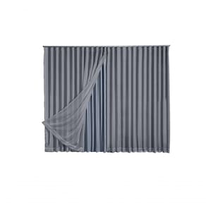 Dimensões: Largura total (Voil): 4.00m (dividido em 2 partes de 2.00m). Largura total (blackout): 2.00m (dividido em 2 partes de 1.00m). Altura: 2.50m. Acabamento: Trilho Suíço Max Duplo, com barra de 10cm. Instalação: