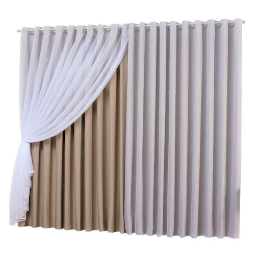 Deixe seus ambientes ainda mais aconchegantes com essa Cortina Blackout com Voil. A cortina em tecido voil com forro em blackout bloqueia 95% da claridade, mantendo os ambientes mais escuros e confortáveis enquanto estiver fechada. A cortina conta com ilhós redondos e cromados, o que a torna uma peça elegante na sua decoração. Ideal para compor a decoração, de quarto, sala, escritório e diversos outros ambientes. Características: - Cortina divida em duas partes com tamanhos iguais - Blackout que bloqueia até 95% da claridade - Deixa o ambiente mais aconchegante - Ilhós redondos cromados Especificações: Produto: Cortina Tipo: Blackout Marca: Beatriz Enxovais Tamanho: 5,00x2,80M (medidas da cortina já franzida) Cor: Avelã Composição: 100% Poliéster Detalhes: Ilhós redondo cromado