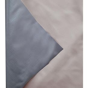 O pvc é um tipo de plástico especialmente feito para cortinas, possuí uma textura na frente para imitar um tecido. A parte de trás do pvc é da cor cinza, é a parte cinza que faz vedar 100 % a luz.