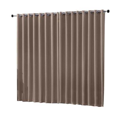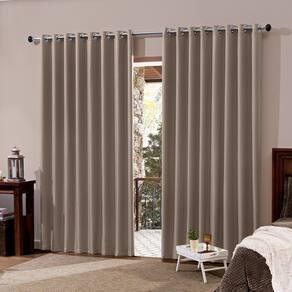 Cortina blackout em tecido 5,00 m x 2,80 m. Cortina em tecido com blackout, bloqueia 99% a claridade, os ilhós são redondos e cromados, o tecido tem um excelente caimento. Medidas: 5,00 m largura x 2,80 m altura. Largura do ilhós: 4 cm. Cor: Avelã Composição: Tecido 100% poliéster.